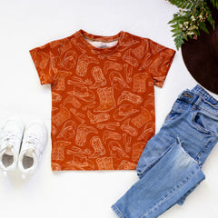 For the little rodeo lovers! This print features the most adorable cowboy boots, cowboy hats and spurs for every cowgirl and cowboy.